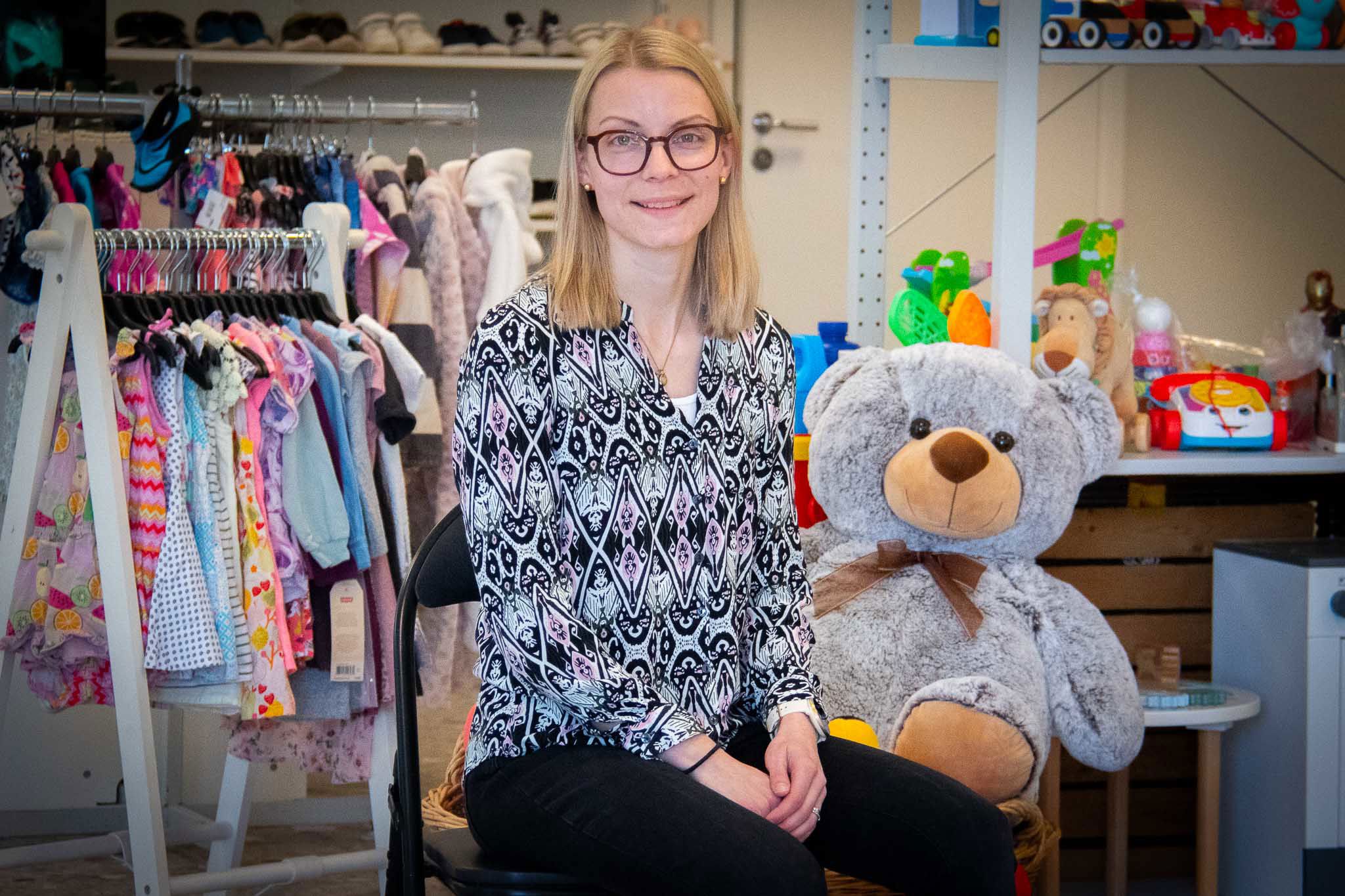 I butiken säljer Emma kläder, leksaker och tillbehör för barn - allt med försäljning på kommission. Det innebär att alla kan lämna in varor för försäljning. Om de sedan blir sålda får inlämnaren en del av vinsten.