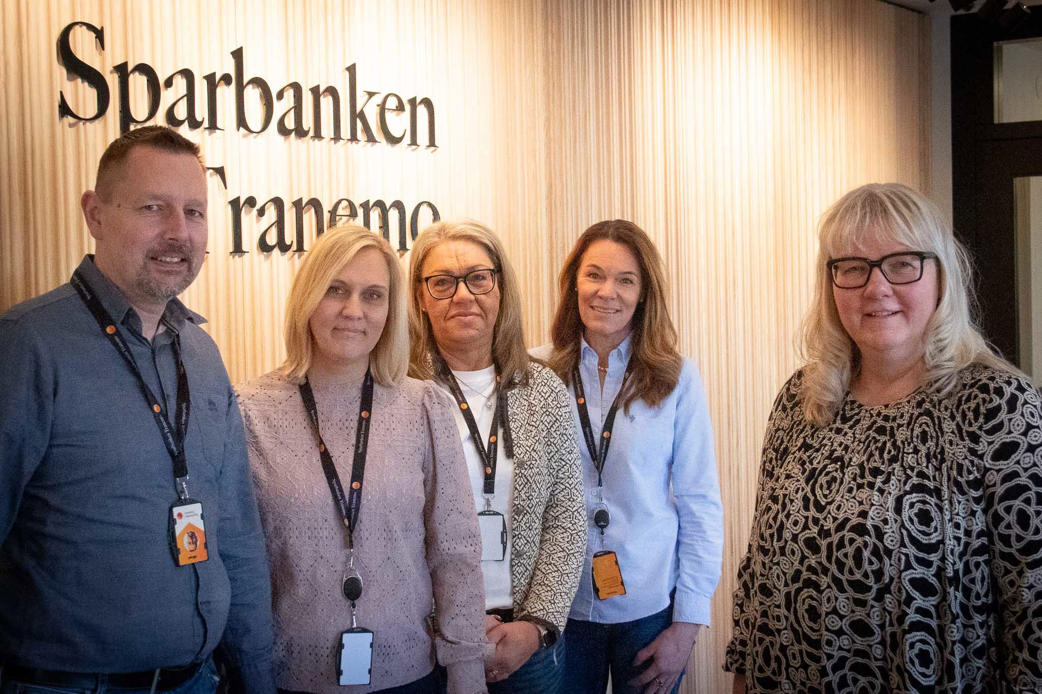 Från vänster på översta bilden ser vi personalen på Gnosjökontoret: Mikael Sjöberg, Adine Brandö, Carola Schultz, Christina Ottosson och Annika Lidh.