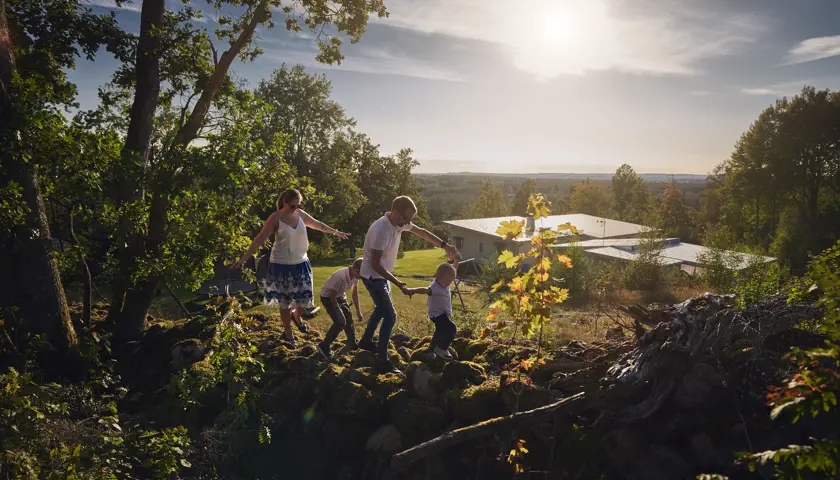 När vi ändå är igång vill vi berätta om fyrahundrafemtio kvadratkilometer natur, en del av den ligger extra storslaget i nationalparken Store Mosse. Vi är en region med sex orter som ligger inbäddade i den småländska skogen. Lugnt och avsides men med en anda som dagligen kopplar ihop oss med världen. Tänk dig ett småländskt Silicon Valley där vi tar kaffepausen i en susande granskog innan vi har ett digital möte med Shanghai. Där man känner varandra, peppar varandra, har familjeföretagandet i sitt DNA och där barnen får lära sig driva företag redan i skolan.