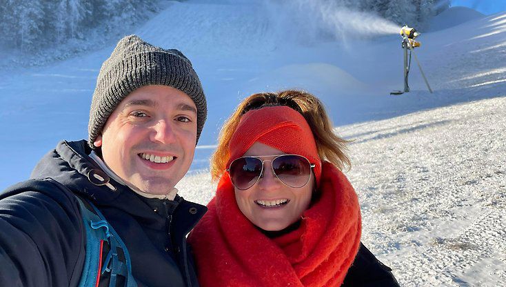 Att kunna njuta av skidåkning vintertid på Isaberg är något Timo och Rachelle gillar.