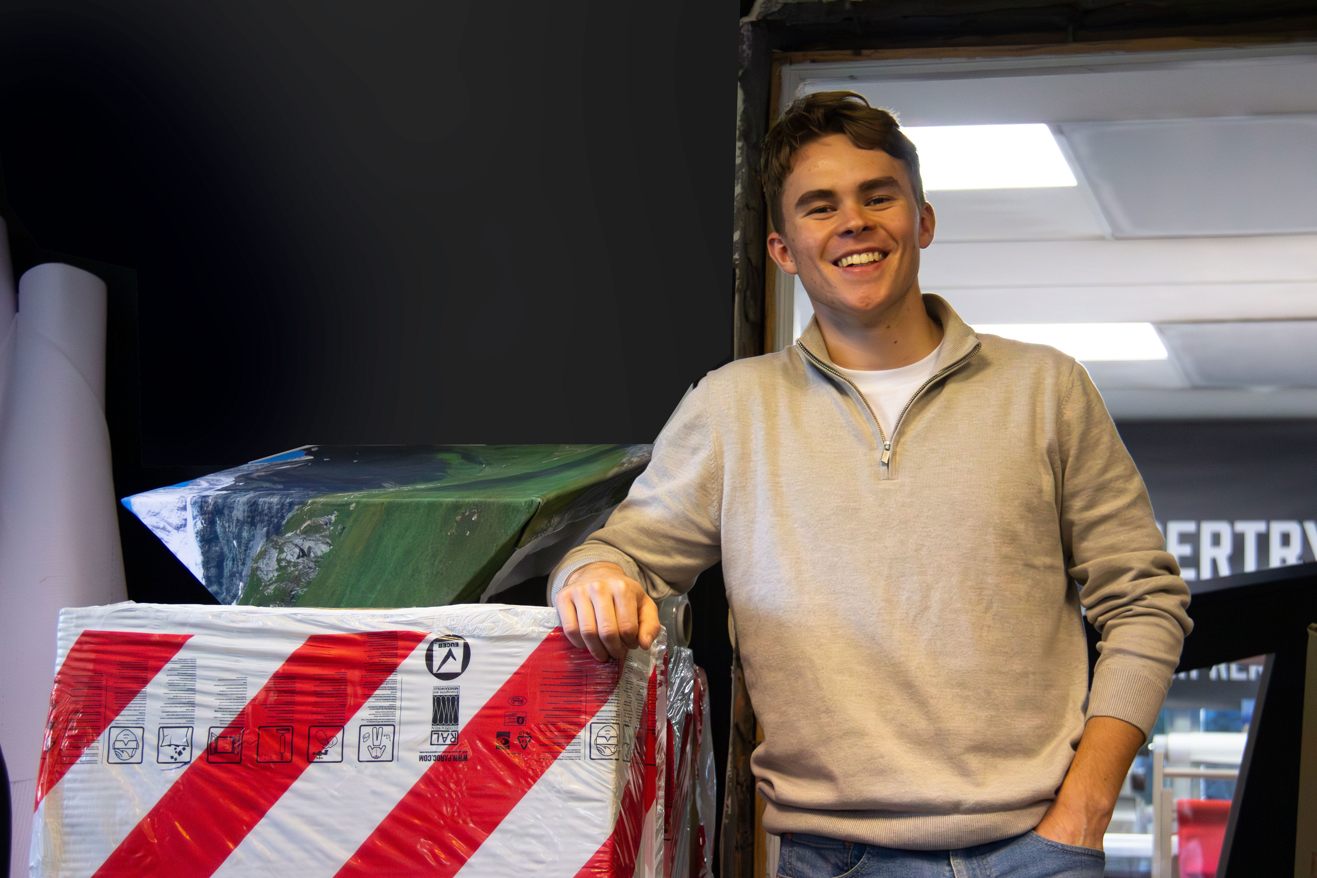 Nu är Joel drygt 20 år och har bestämt sig för att stanna kvar för att pröva sina vingar som entreprenör. Han läste med teknikinriktning på GKC och har funderingar på att läsa vidare i framtiden.