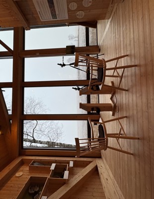 Vi håller på den typiskt svenska traditionen att ta av sig skorna inomhus. Golvet är varmt och det stämmer bra med den avslappnade atmosfären på naturum och dessutom blir ljudnivån lägre.