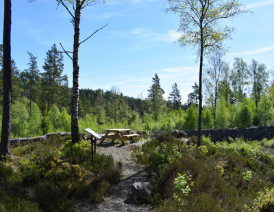 I området finns flera bänkar för picknick och grillplats. Parkeringen finns mellan Marieholm och Skärvhult, sväng in vid skylten "Saxhyttan".