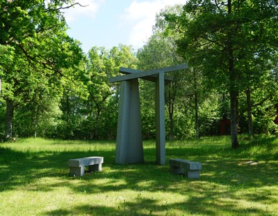 2. KulltorpKulltorparen av Gösta Wessel och Berit Almer"Se upp när du färdas på Kykovägen! Här dyker Kulltorparen fram ur bröten vid vägens krök. Det gör han också när du färdas på Anderstorpsvägen. Denna energiska, arbetsamma inspiratör kliver fram ur skulpturens kaos och överraskar både barn och vuxna. Skulpturen är konstruerad så att den sedd ur vissa vinklar kan upplevas som en abstrakt skulptur. Ur andra vinklar framträder en streckgubbe – Kulltorparen."