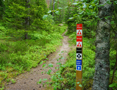 Tänk på: Leden delas delvis med mountainbikecyklister – visa hänsyn och håll till höger i möte.