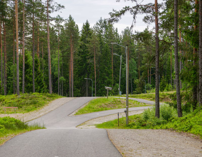Slingan är belyst och i kanten finns även en gruslagd del.