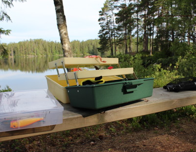 Runt sjön finns det olika grillplatser och vindskydd för den som vill ta med sig fika och ta en paus i fiskandet.