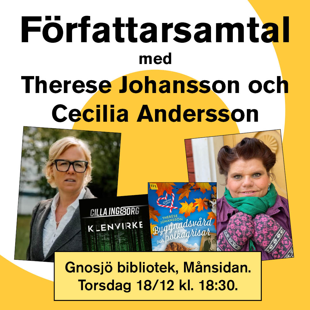 Välkommen till ett samtal på Gnosjö bibliotek med författarna Therese Johansson och Cecilia Andersson.