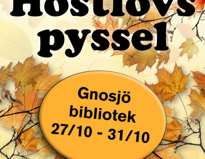 Välkommen till Gnosjö bibliotek för en pysselvecka under höstlovet vecka 44. Här kan du pyssla, rita, klippa och klistra eller bygga med lego. Du kan också bara sitta och ta det lugnt och läsa en bok. Du har också möjlighet att delta i en workshop torsdag 30 oktober där du får testa på Gelli plate. Se separat evenemang för mer info om den workshopen.